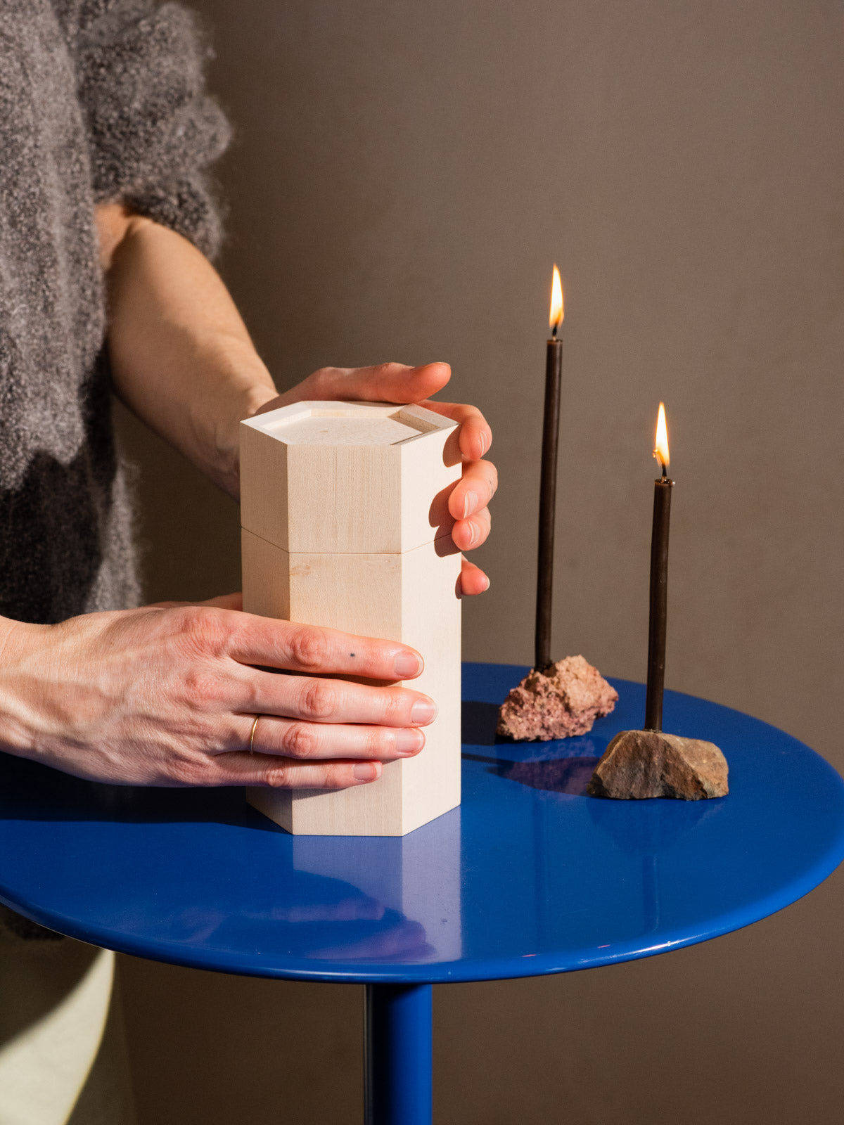 Die kleine Holzurne Fides wird von den Brüdern Max und Tim in der Berliner Schreinerei kreislauf von Hand gefertigt. Ihr Äußeres ist aus Ahornholz gemacht. Für die Aufbewahrung der Asche enthält sie im Inneren verborgen einen warmen Einsatz aus Nussbaumholz. Ihre schlichte Form und die natürliche Maserung des Holzes ergeben ein schönes Designobjekt, das sich gut in das eigene Zuhause integriert und nicht auf den ersten Blick als Urne erkennbar ist. Auf dem Deckel der Urne ergibt sich ein kleines Plateau, welches zum Ablegen persönlicher Erinnerungsobjekte einlädt.